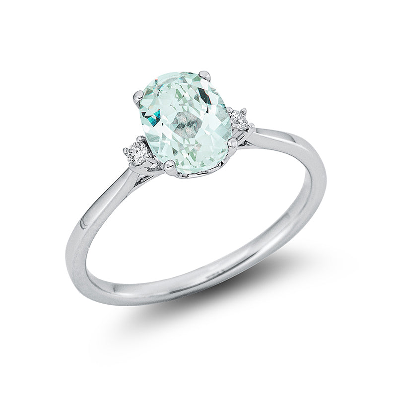 Ring 18 kt WG, 2 Brill. 0,04 ct, TW-si, 1 Amethyst 1,22 ct grün