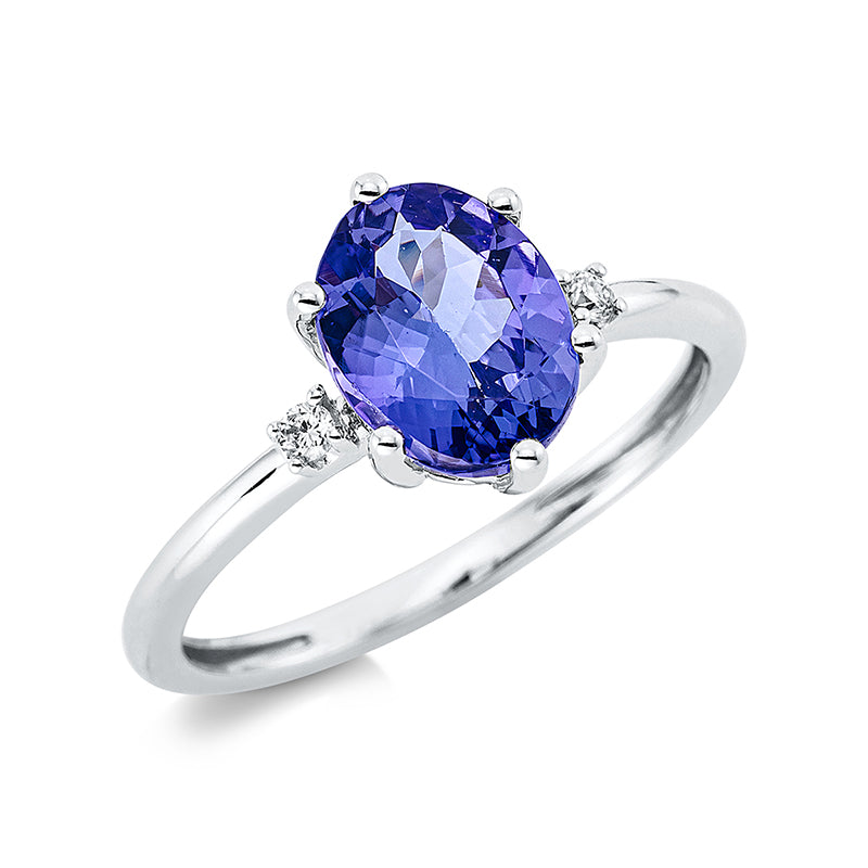 Ring 18 kt WG, 2 Brill. 0,04 ct, TW-si, 1 Tansanit 2,04 ct blau