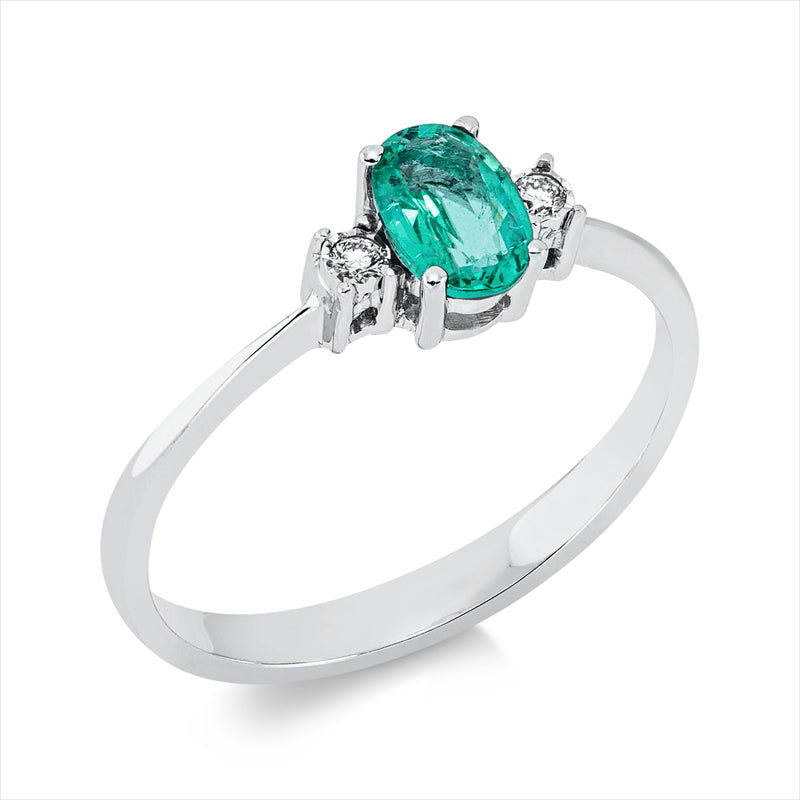 Ring 18 kt WG, 2 Brill. 0,03 ct, TW-si, 1 Smaragd 0,62 ct grün
