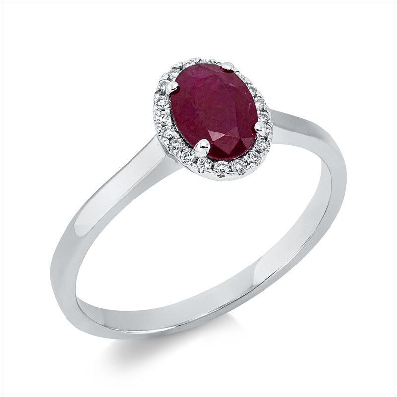 Ring 18 kt WG, 20 Brill. 0,06 ct, TW-si, 1 Rubin 1,00 ct rot