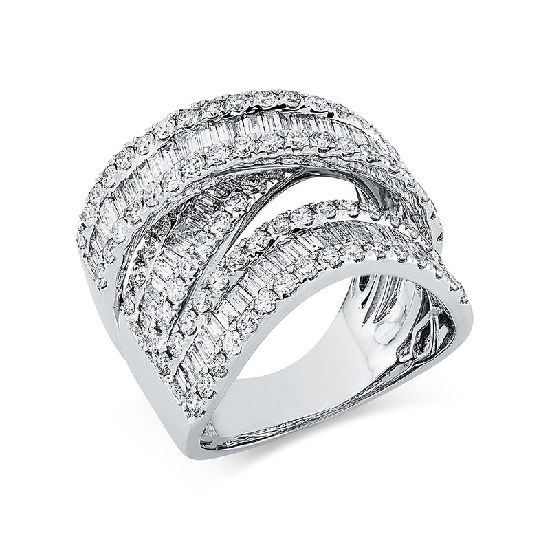 Ring 18 kt WG, 73 Bag. 1,44 ct, TW-si, 102 Brill. 1,64 ct, TW-si