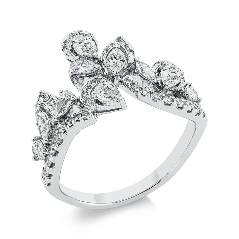 Ring 18 kt WG, 7 Tropfen 0,53 ct, TW-si, 3 Nav. 0,19 ct, TW-si, 44 Brill. 0,26 ct, TW-si