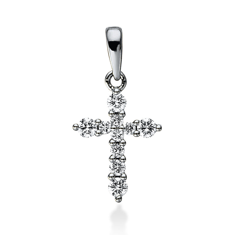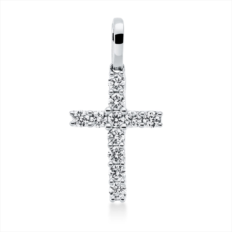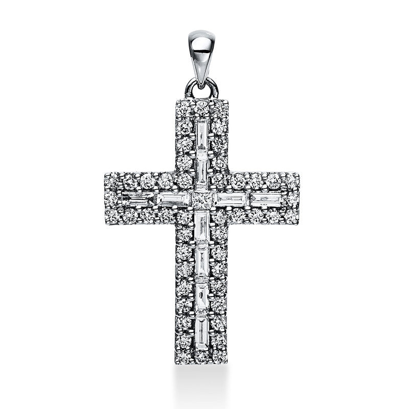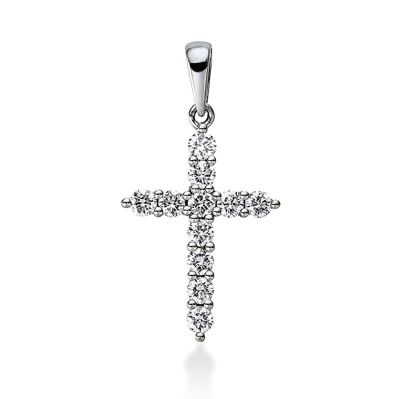 Anhänger 18 kt WG, mit Öse, 10 Bag. 0,41 ct, TW-si, 1 Princ. 0,04 ct, TW-si, 48 Brill. 0,61 ct, TW-si