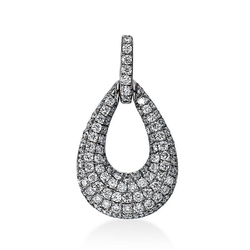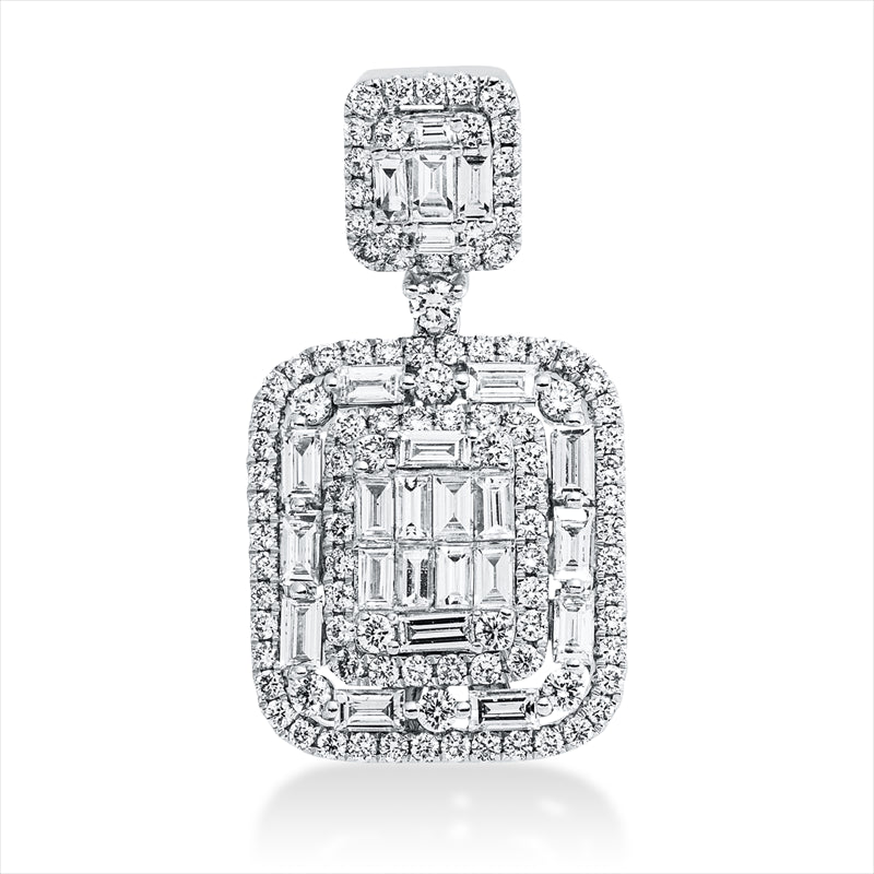 Anhänger 18 kt WG, mit Öse, 10 Brill. 0,14 ct, 1 Brill. 0,03 ct,21 Bag. 0,79 ct, 90 Brill. 0,51 ct, F-vsi