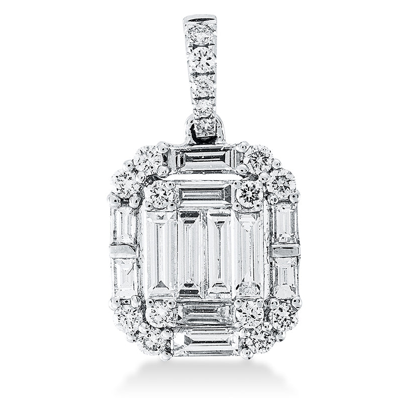 Anhänger 18 kt WG, mit Öse, 12 Bag. 0,82 ct, TW-vsi, 17 Brill. 0,27 ct, TW-si