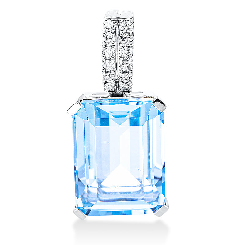 Anhänger 18 kt WG, mit Öse, 12 Brill. 0,13 ct, TW-si, 1 Topas 10,40 ct sky blue