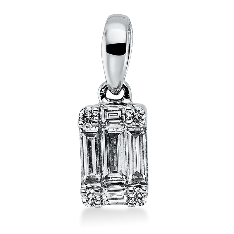 Anhänger 18 kt WG, mit Öse, 5 Bag. 0,05 ct, TW-vsi, 4 Bag. 0,27 ct, TW-vsi, 8 Brill. 0,06 ct, TW-si