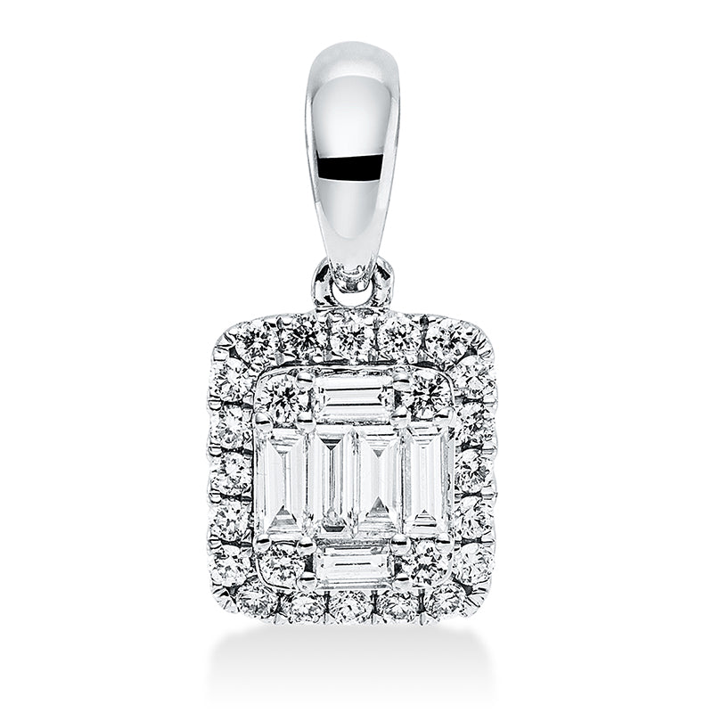 Anhänger 18 kt WG, mit Öse, 6 Bag. 0,35 ct, TW-si, 31 Brill. 0,31 ct, TW-si