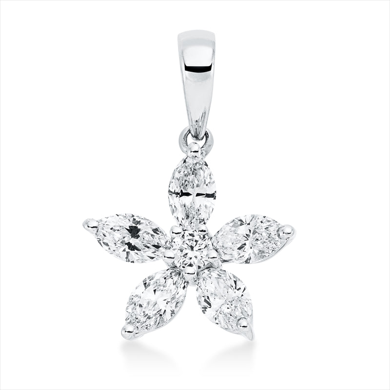 Anhänger 18 kt WG, mit Öse, 5 Nav. 0,60 ct, TW-vsi, 1 Brill. 0,05 ct, TW-si