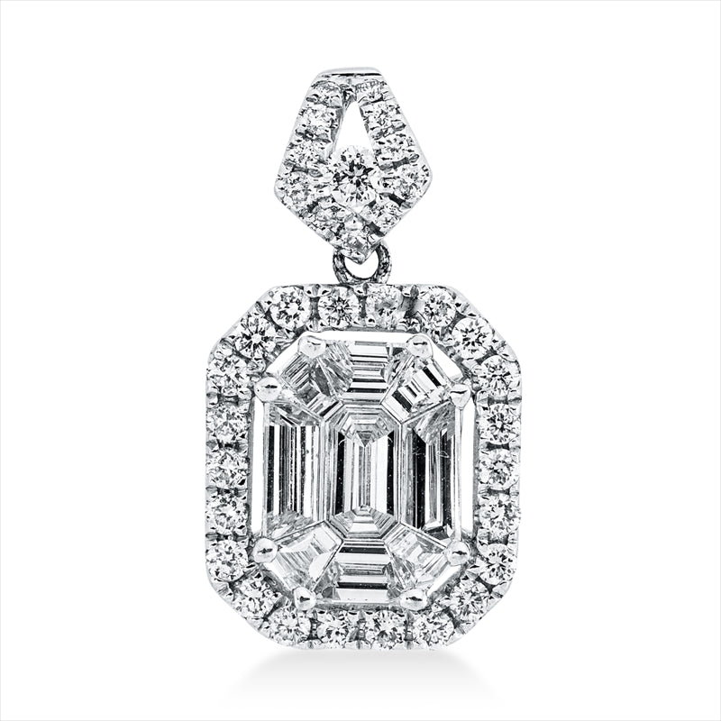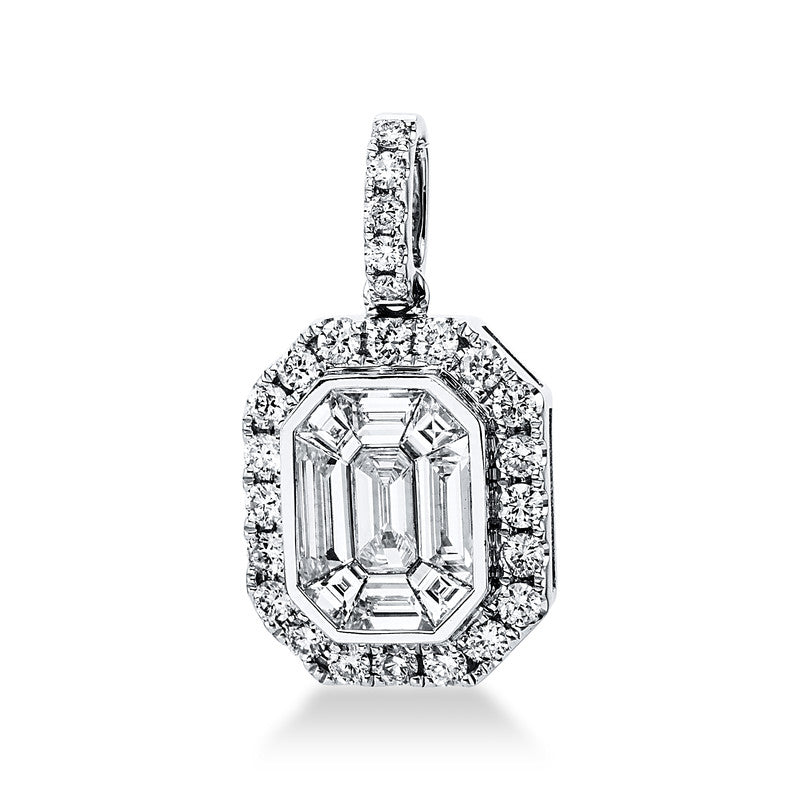 Anhänger 18 kt WG, mit Öse, 9 Trap. 0,49 ct, TW-si, 1 Brill. 0,03 ct, TW-si, 33 Brill. 0,22 ct, TW-si