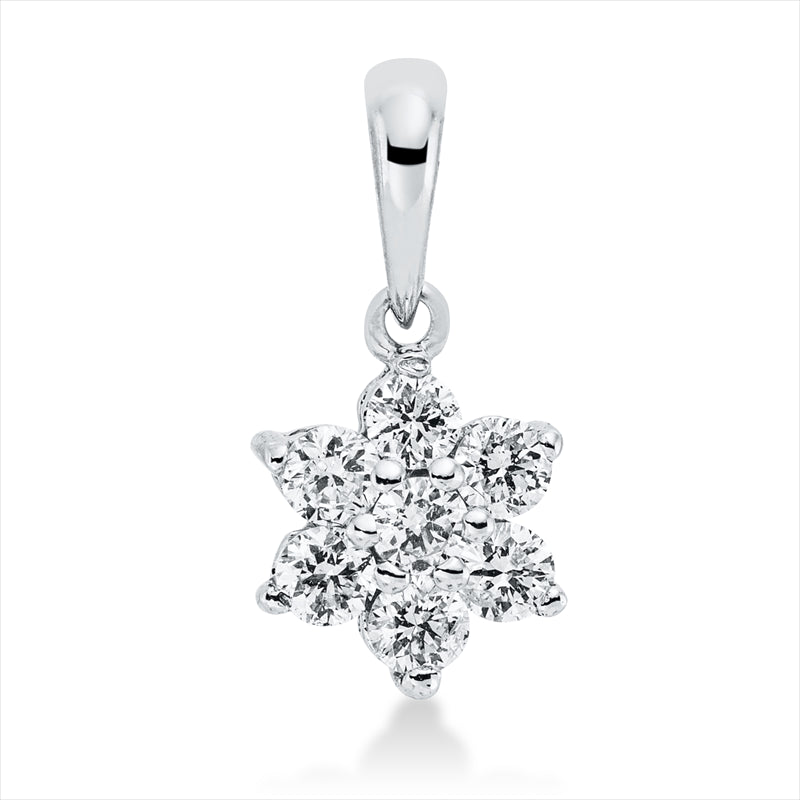 Anhänger 18 kt WG, mit Öse, 9 Sm.schliff 0,57 ct, TW-si, 25 Brill. 0,30 ct, TW-si