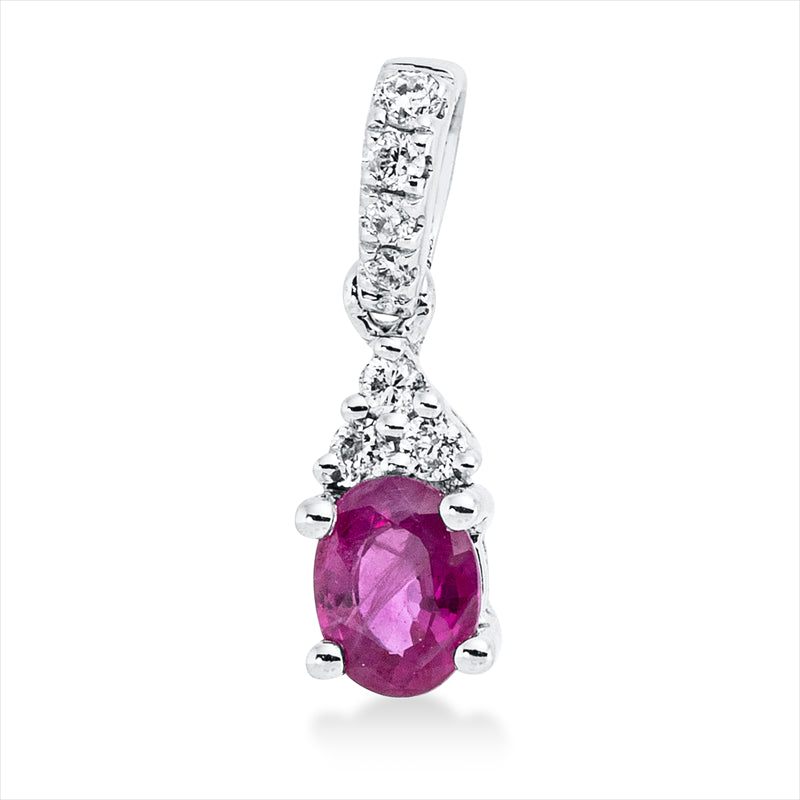 Anhänger 18 kt WG, mit Öse, 7 Brill. 0,07 ct, TW-si, 1 Rubin 0,31 ct rot