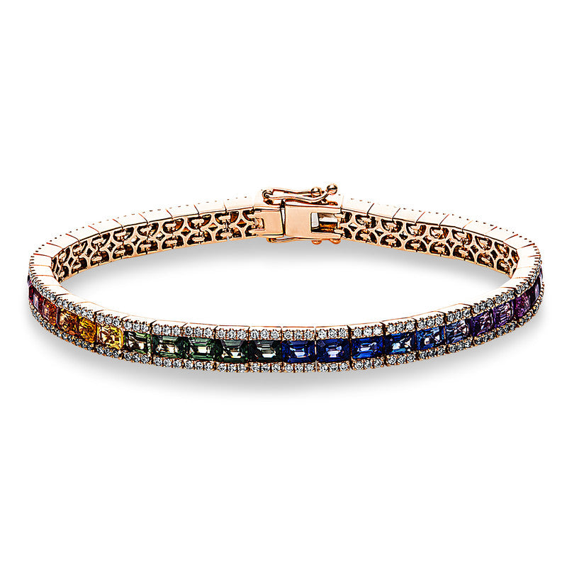 Armband 18 kt RG. 266 Brillanten 1.29 ct. TW-si. 44 Saphire 11.72 ct fancy. L:17.8 cm