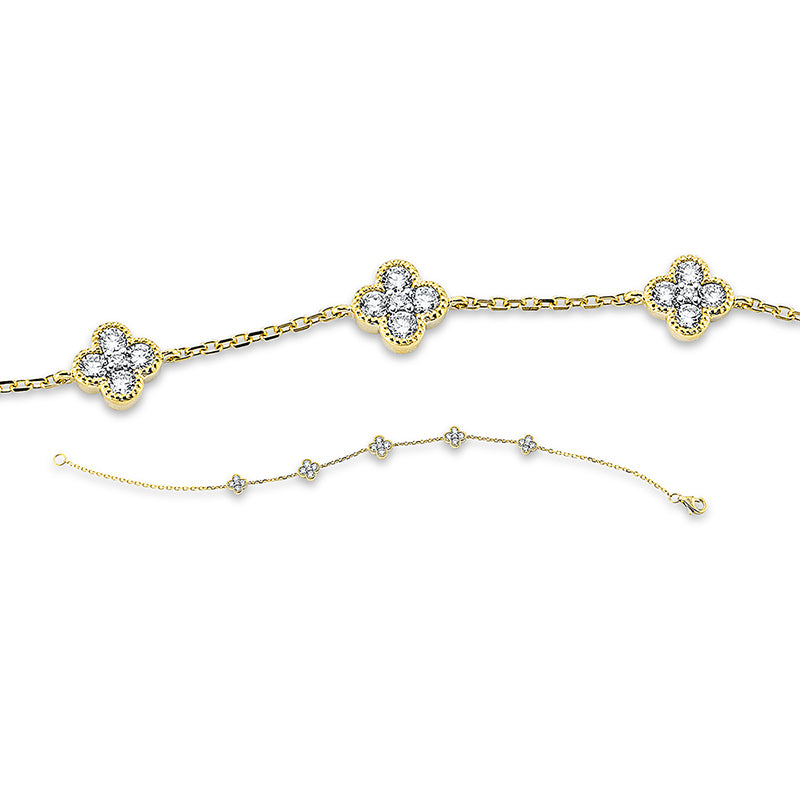 Armband 18 kt GG. Fassung rhodiniert. 1 Brill. 0.01 ct. TW-si. 16 Brillanten 0.48 ct. TW-si. 4 Brillanten 0.17 ct. TW-si. 4 Brillanten 0.03 ct. TW-si. L:17.8 cm