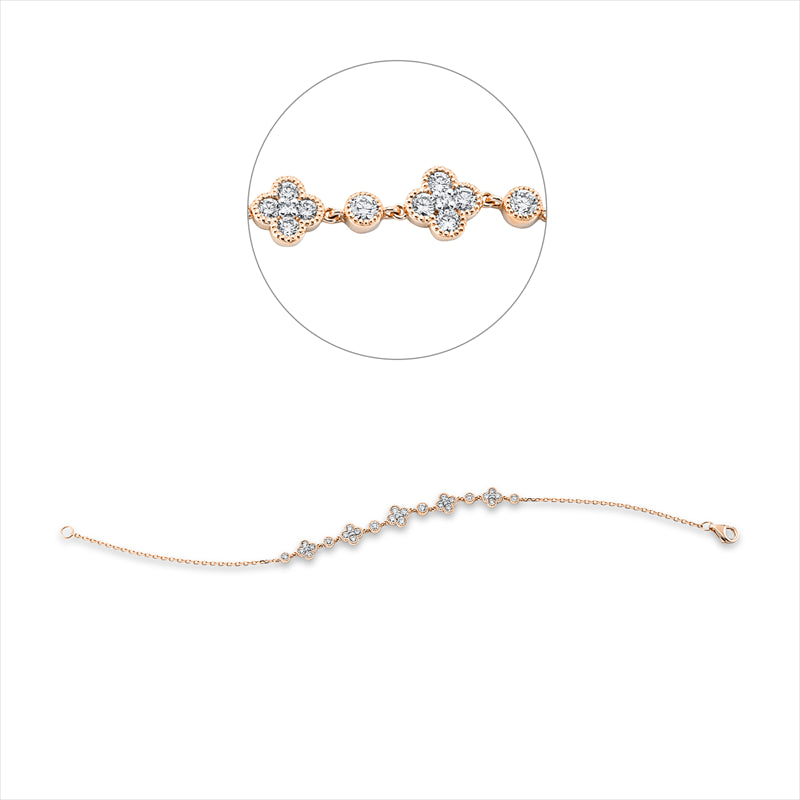 Armband 18 kt RG+WG. 4 Brillanten 0.03 ct. TW-si. 20 Brillanten 0.62 ct. TW-si. 6 Brillanten 0.28 ct. TW-si. 1 Brill. 0.01 ct. TW-si. L:17.8 cm