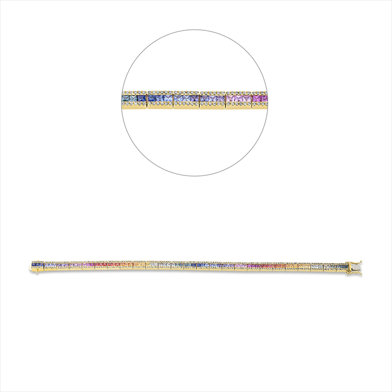 Armband 18 kt GG. 300 Brillanten 0.93 ct. TW-si. 75 Saphire 5.23 ct fancy. B:4.5 mm. L:18.0 cm. S:2.6 mm
