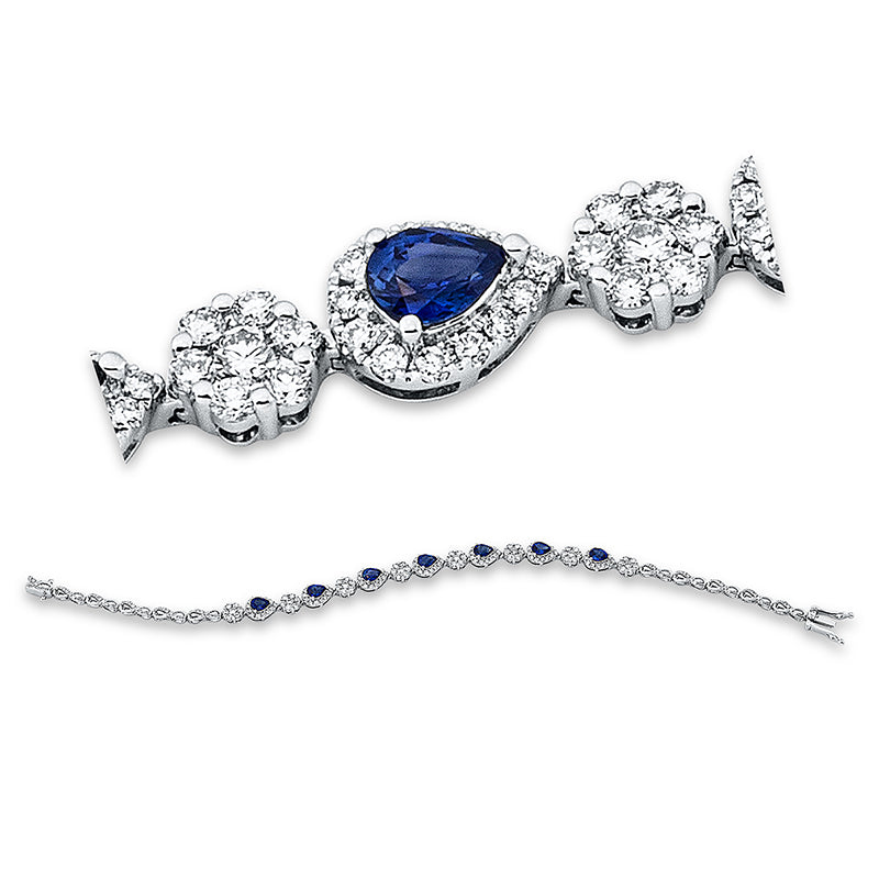 Armband 18 kt WG, 8 Brill. 0,33 ct, TW-si, 184 Brill. 1,32 ct, TW-si, 7 Saphire 1,64 ct blau