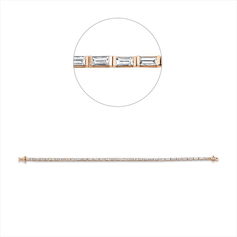 Armband 18 kt RG. 34 Baguette 3.43 ct. TW-si. L:18.0 cm