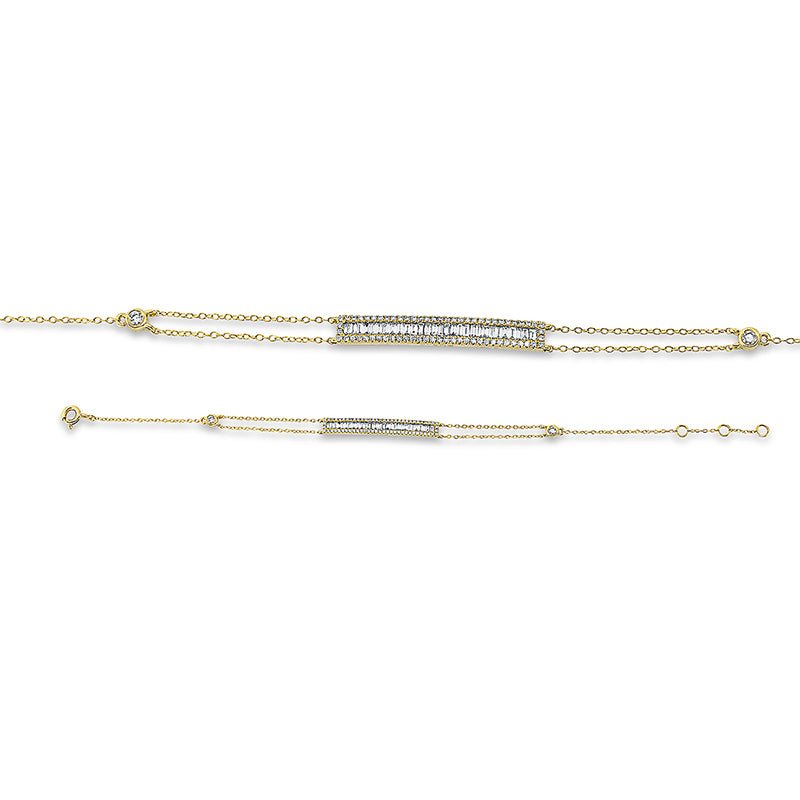 Armband 18 kt GG. mit ZÖ 15.5cm+16.5cm. rhodinie. 29 Baguette 0.28 ct. TW-si. 68 Brillanten 0.27 ct. TW-si. B:3.8 mm. L:17.5 cm