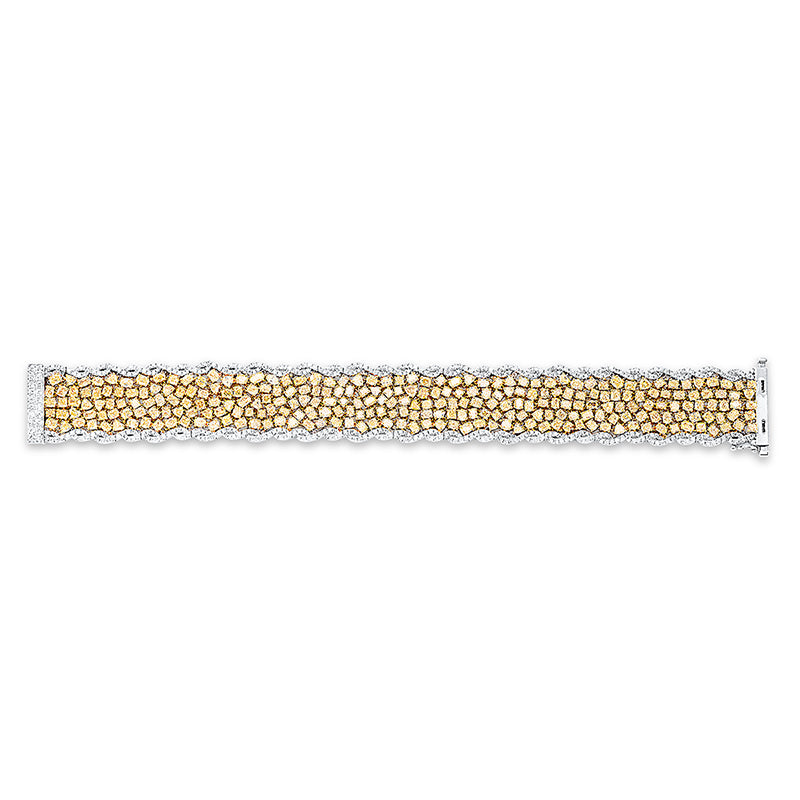 Armband 18 kt GG+WG, 157 Oval 13,23 ct, gelb-vsi, 42 Nav. 3,30 ct, gelb-vsi, 33 Herzschl. 2,66 ct, gelb-vsi, 43 Cushion 3,67 ct, gelb-vsi, 472 Brill. 2,93 ct, TW-vsi
