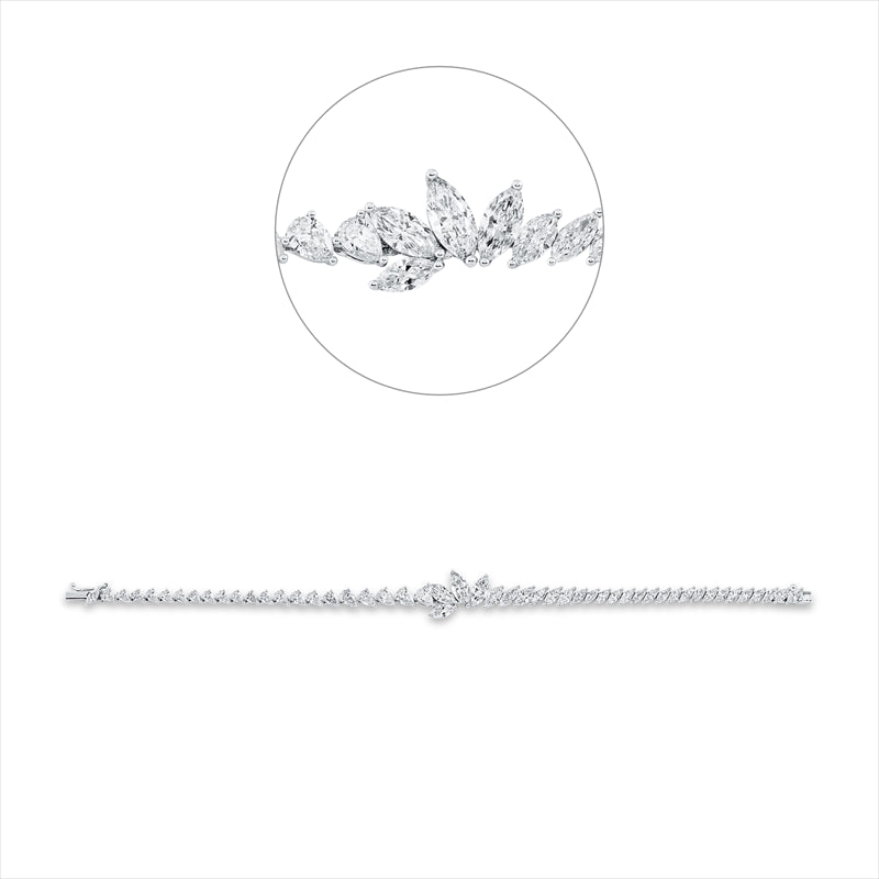 Armband 18 kt WG. 20 Tropfen 2.17 ct. TW-si. 2 Navette 0.74 ct. TW-si. 29 Navette 3.09 ct. TW-si. L:16.5 cm