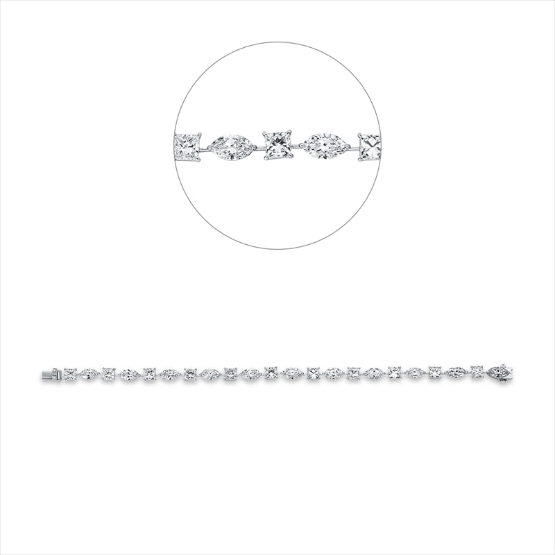 Armband 18 kt WG. 11 Princ. 5.79 ct. F-vvs. 11 Navette 5.76 ct. TW-vvs. 3 Brillanten 0.03 ct. TW-vsi/si. L:17.8 cm