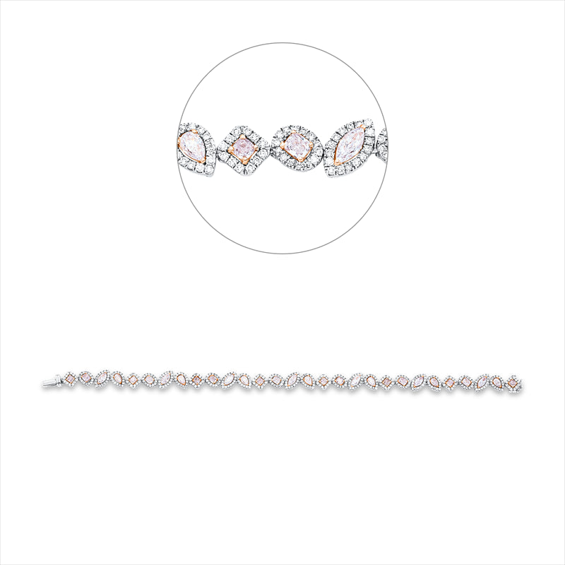 Armband 18 kt WG+RG, 29 Fant-Schl. 3,33 ct, pink-vsi, 411 Brill. 1,84 ct, F-vsi