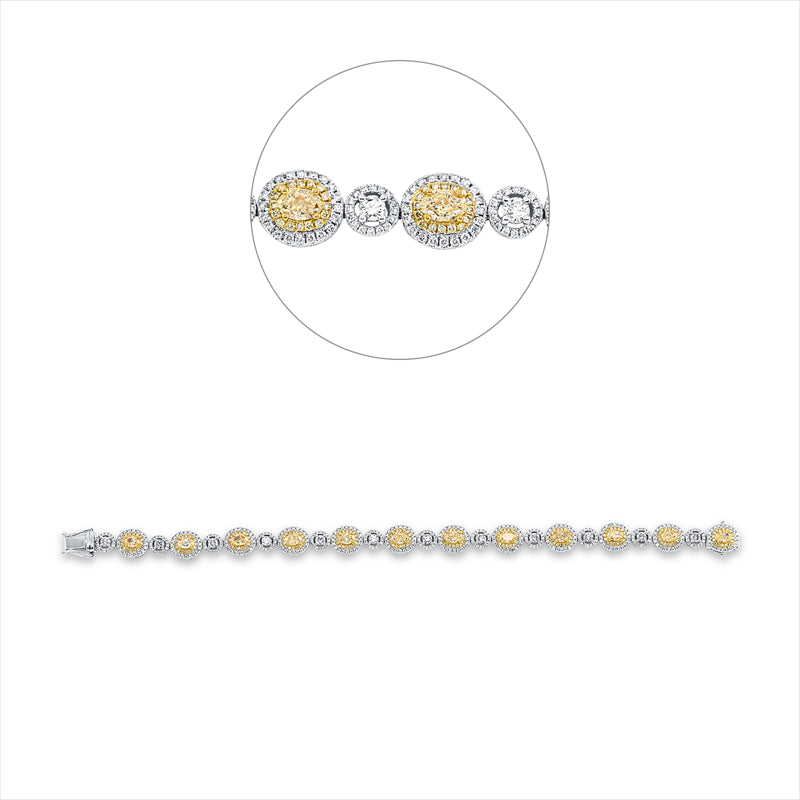 Armband 18 kt WG+GG. 444 Brillanten 2.57 ct. TW-si. 12 Oval 3.23 ct. gelb. 192 Brillanten 0.69 ct. gelb. L:17.8 cm