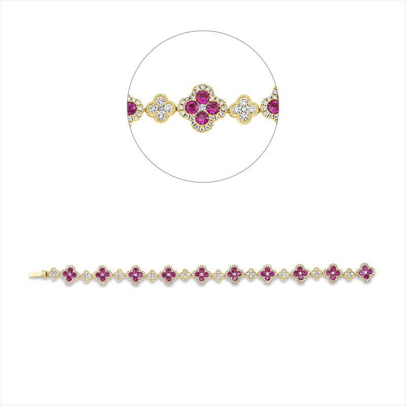 Armband 18 kt GG, 50 Brill. 0,41 ct, 50 Brill. 1,85 ct, 200 Brill. 1,07 ct, TW-si, 40 Rubine 5,59 ct rot