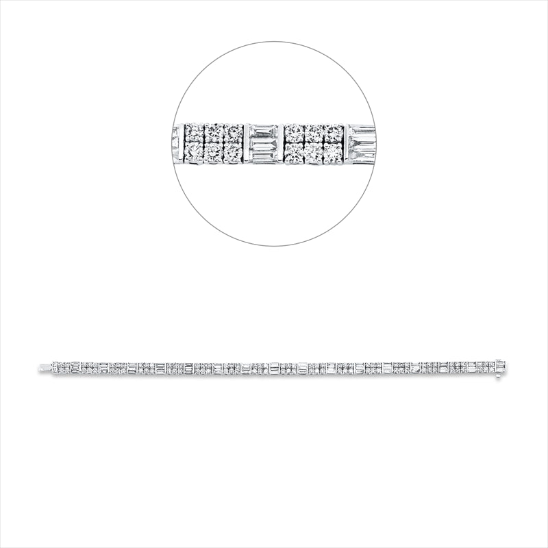 Armband 18 kt WG. 48 Baguette 2.11 ct. F-vsi. 96 Brillanten 3.82 ct. TW-si. L:17.8 cm