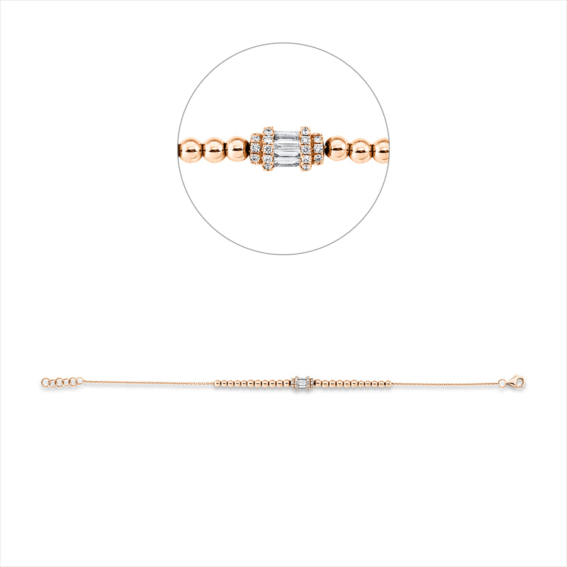 Armband 18 kt RG, mit ZÖ 16,5 cm, 10 Bag. 0,25 ct, F-vsi/si, 44 Brill. 0,21 ct, TW-si