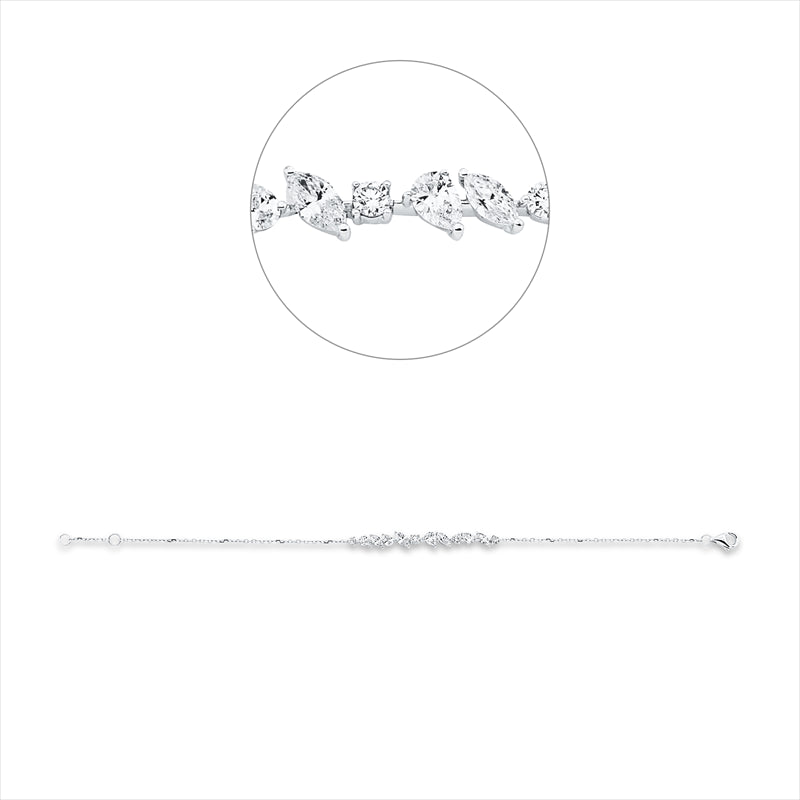 Armband 18 kt WG, mit ZÖ 16,5 cm, 4 Tropfen 0,39 ct, F-vsi/si, 4 Nav. 0,39 ct, F-vsi/si, 4 Brill. 0,21 ct, TW-si