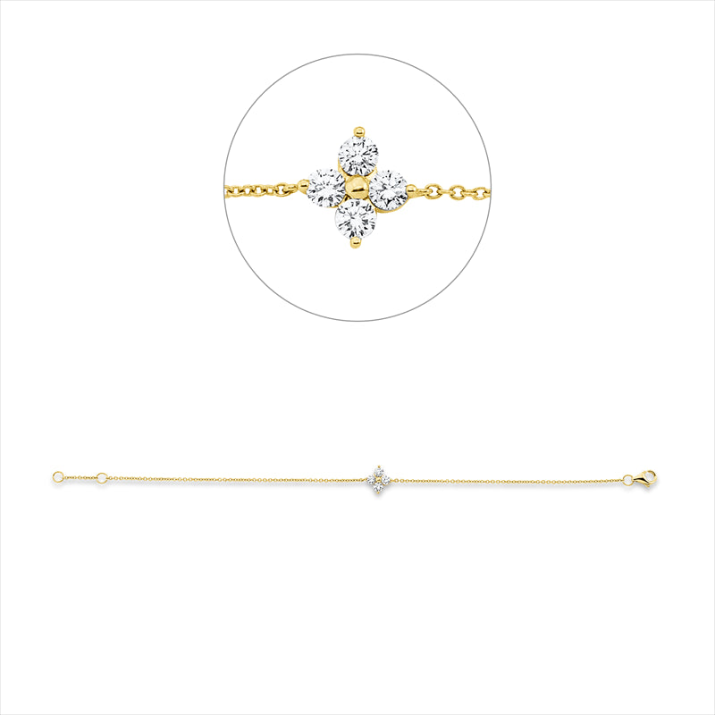 Armband 18 kt GG, mit ZÖ16,5 cm, 4 Brill. 0,40 ct, F-vsi/si