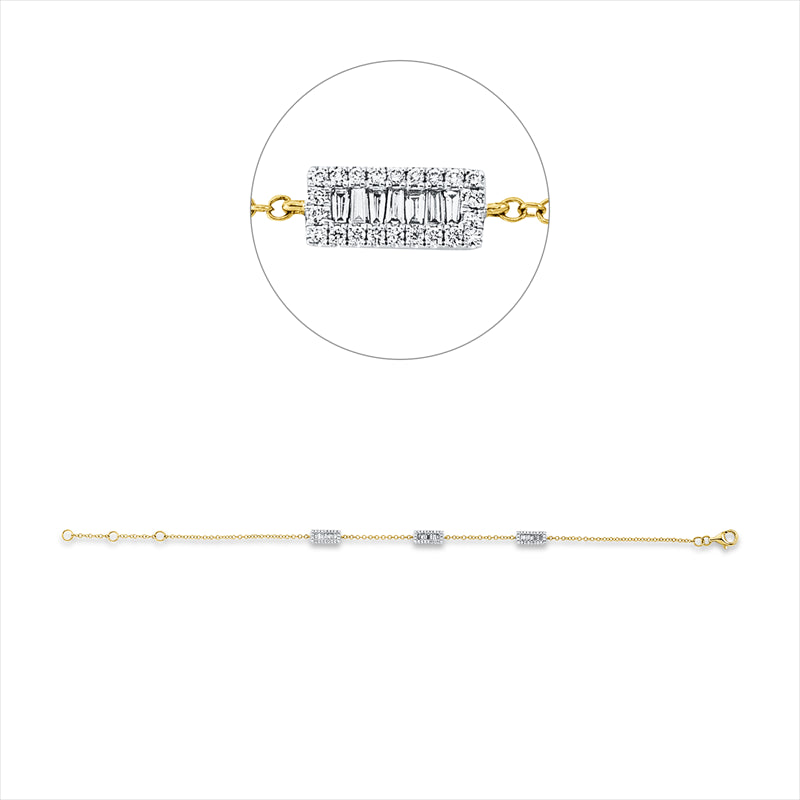 Armband 18 kt GG. mit ZÖ16.5 cm.17.5 cm. 21 Trapeze 0.18 ct. TW-si. 66 Brillanten 0.18 ct. TW-si. L:19.0 cm