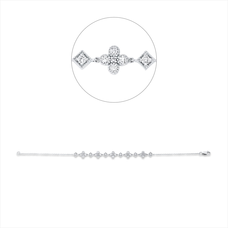 Armband 18 kt WG. 20 Brillanten 0.53 ct. TW-si. 6 Brillanten 0.23 ct. TW-si. 5 Brillanten 0.03 ct. TW-si. B:6.4 mm. L:17.8 cm. S:1.9 mm