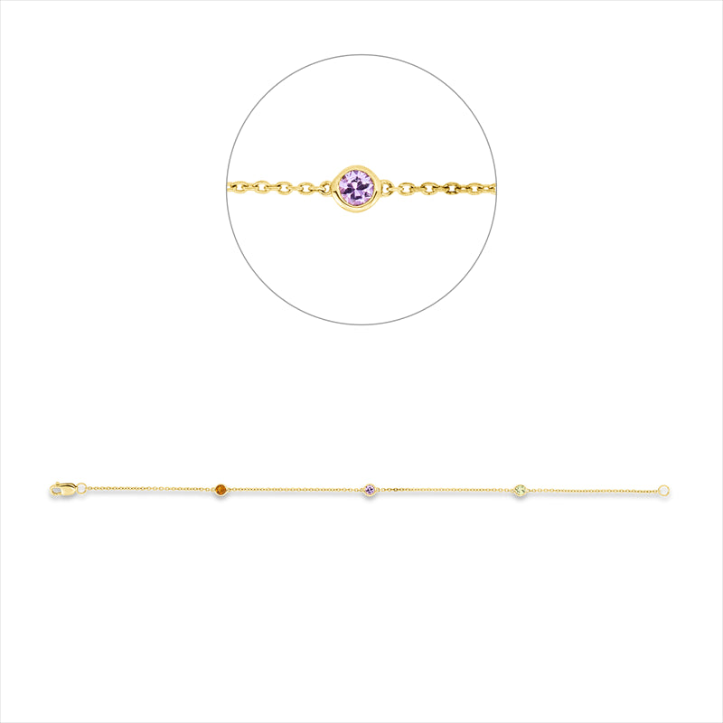 Armband 18 kt GG, 1 Saphir 0,12 ct pink, 1 Citrin 0,10 ct mandarin, 1 Peridot 0,12 ct grün