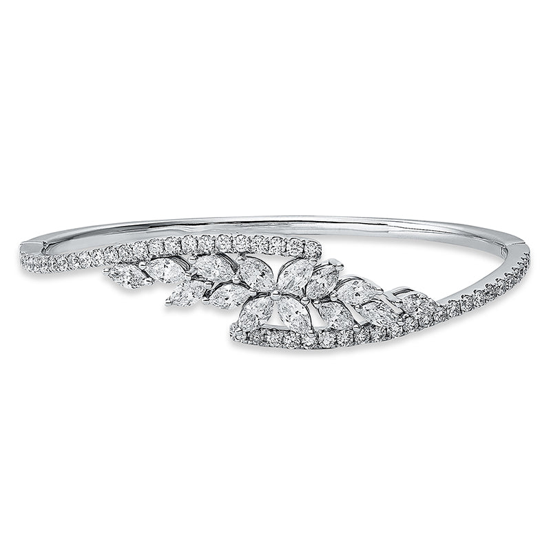 Armreif 18 kt WG, 14 Nav. 2,10 ct, TW-si, 46 Brill. 1,16 ct, TW-si
