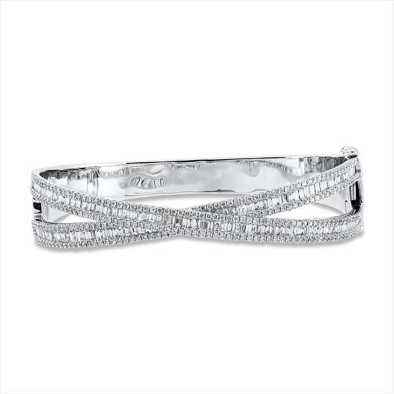 Armreif 18 kt WG, 135 Bag. 1,81 ct, TW-vsi, 272 Brill. 1,36 ct, TW-vsi