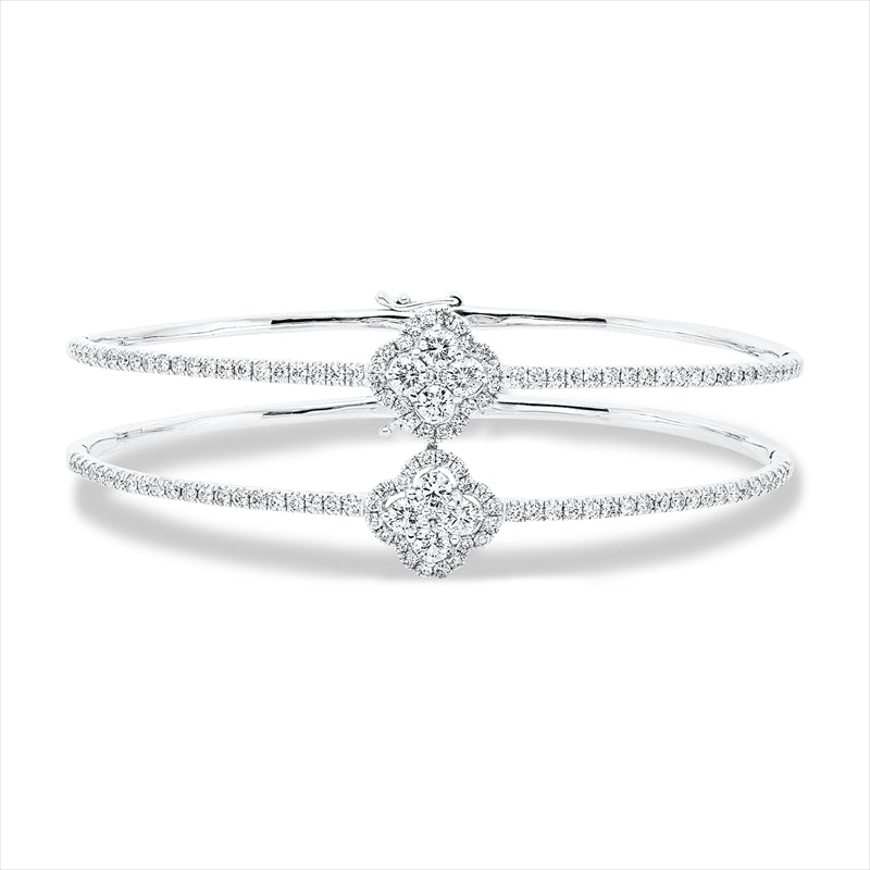 Armreif 18 kt WG Kleeblatt. 134 Brillanten 2.48 ct. TW-si. H:11.6 mm. B:22.2 mm. S:4.3 mm
