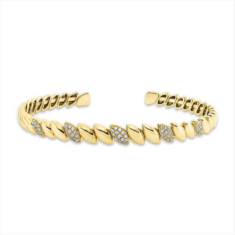Armreif 14 kt GG, 55 Brill. 0,34 ct, TW-pi