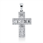 Anhänger 18 kt WG Kreuz. 1 Princ. 0.10 ct. TW-si. 14 Baguette 0.76 ct. TW-si. 52 Brillanten 0.27 ct. TW-si. H:24.7 mm. B:13.7 mm