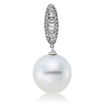 Anhänger 18 kt WG, 9 Trap. 0,13 ct, W-si, 24 Brill. 0,11 ct, W-si, 1 SS weiß 12 mm