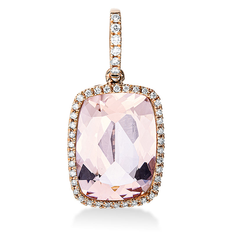 Anhänger 18 kt RG, mit Öse, 44 Brill. 0,16 ct, TW-si, 1 Morganit 5,20 ct rosa