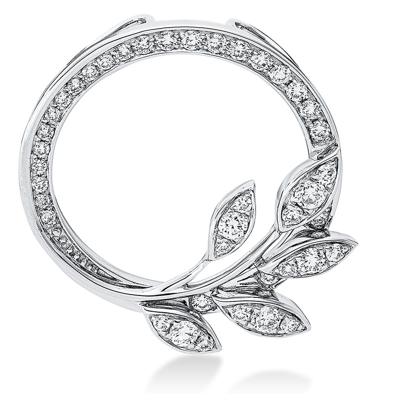 Anhänger 18 kt WG Blätter. 40 Brillanten 0.58 ct. TW-vsi. H:25.4 mm. B:25.3 mm. S:3.1 mm
