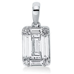 Anhänger 18 kt WG. mit Öse. 2 Baguette 0.13 ct. E-vsi. 3 Baguette 0.61 ct. E-vsi. 4 Brillanten 0.05 ct. TW-si