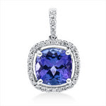 Anhänger 18 kt WG. mit Öse. 33 Brillanten 0.18 ct. TW-si. 1 Tansanit 2.01 ct blau. H:18.4 mm. B:11.1 mm. S:5.4 mm