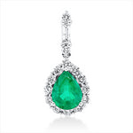 Anhänger 18 kt WG, mit Öse, 1 Bag. 0,10 ct, W-pi, 14 Brill. 0,68 ct, W-pi, 1 Smaragd 1,53 ct grün