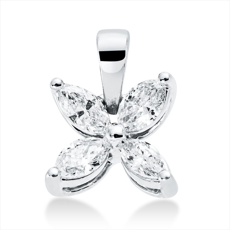 Anhänger 18 kt WG. mit Öse. 4 Navette 0.24 ct. TW-si