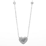 Collier 18 kt WG Herz. mit ZÖ 38 cm + 41 cm. 4 Brillanten 0.17 ct. TW-si. 5 Baguette 0.23 ct. TW-si. 16 Brillanten 0.26 ct. TW-si. H:9.0 mm. B:10.5 mm. L:42.5 cm. S:1.9 mm