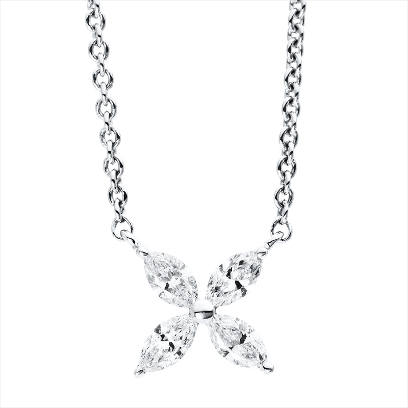 Collier 18 kt WG. mit ZÖ 40.6 cm & 43.2 cm. 4 Navette 0.27 ct. TW-si. H:6.8 mm. B:7.1 mm. L:45.0 cm